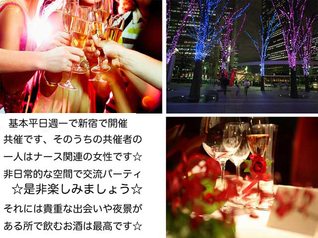 この共催に限っては現地のスタッフさんがしっかりしておりますので、人のパイプの繋がりがあってここに告知しておりますですので、僕はたまに、遊びには行っていますが毎回はおりませんが、勿体ないので告知しております☆是非遊びに行ってみて下さいね☆ ☆彡★☆彡★☆彡★☆彡★☆彡★☆彡★☆彡★☆彡 ナース関連の方々と新宿共催2.16(木)はこの交流パーティ☆・都内の夜景を独り占めできるタワーマンションにご招待いたします☆ タワーマンションと聞くと勧誘がありそうとかお思いでしょうが この会は安心していく事が出来ます