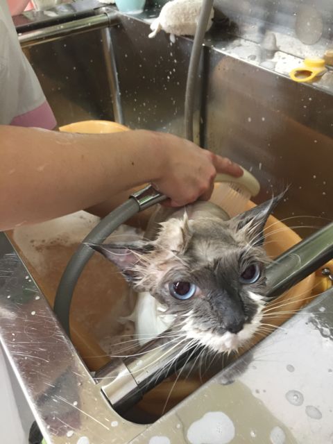 キャッテリー様・ブリーダー様向けに、プロのトリマーによる猫のシャンプー教室を開催します。 当然一般の方の参加も大歓迎です。 参加費はお一人1000円。 そのほか、指導を受けながら自分で愛猫のシャンプーをされる方は1頭2000円が必要です。 プロのトリマーにシャンプーをまかせる場合は1頭3000円です。 通常、猫のシャンプーは5000円ですのでかなりお得かと思われます。 プロの指導で、猫シャンプーの技術を身につけるのも良し、艶が無いふわっと仕上がらないなどお悩み相談するのも良し。 時間は、10:00〜20:00。 何名かのブ