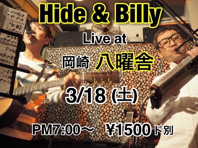 3·î18Æü(ÅÚ) °¦Ãθ© ²¬ºê ȬÍË¼Ë http://www7a.biglobe.ne.jp/~hachiyousha/ ¡ÖMUSIC¡× ½Ð±é: ¥Ò¥Ç&¥Ó¥ê¡¼(±Ê°æ½¨É§+Æ£¸¶Î¼±Ñ) start19:00¡¡¥Á¥ã¡¼¥¸1500±ß +1DRINK