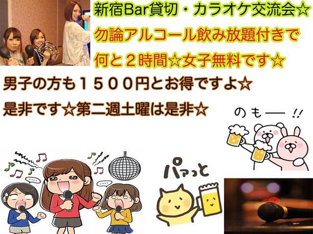 このイベントは僕の代わりにスタッフが共催として行っております☆ 新宿共催カラオケ交流パーティー、2時間・高級ラウンジBar貸切☆女子は無料ですが飲み放題付きですよん★カラオケ好きにはたまらない企画でしょう☆男子もね週末で貸切で、この値段内容安いと思います☆ 新宿・共催 半立食Bar貸切☆恋活・友活、新しい交流パーティです☆ 勿論イベント参加不安て方は、同じ参加者さんやボランティアスタッフが居るLINEのグルチャに 招待します、下は21歳から上は50代まで未婚既婚問わず居ますし 女子の方でも安心して参