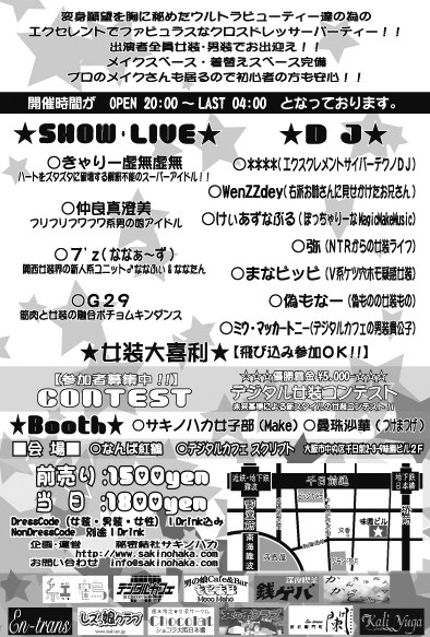 Æþ¾ì»þ´Ö¡§¥³¥¹¥×¥ì´õ˾¼Ô¡§22:30¡Á °ìÈÌ»²²Ã¡§23:00 ¡Á
