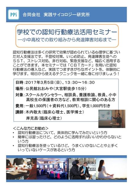 ´ÉÍý¿ÍÍÍ¡¢µ®½Å¤Ê¥¹¥Ú¡¼¥¹¤ò¤ª¼Ú¤ê¤·¤Þ¤¹¡£ ¡ú¡¡³Ø¹»¤Ç³èÍѤ¹¤ëǧÃÎ¹ÔÆ°ÎÅË¡¥»¥ß¥Ê¡¼¡Á¾®Ãæ¹â¹»¤Ç¤Î¼è¤êÁȤߤ«¤éȯã¾ã¤¬¤¤Âбþ¤Þ¤Ç¡Á¡¡¡ú ¡ÚÆâÍÆ¡Û ¡¡ ¡¡Ç§ÃÎ¹ÔÆ°ÎÅË¡¤Ï¿¤¯¤Î¸¦µæ¤Ç¸ú²Ì¤¬Ç§¤á¤é¤ì¤Æ¤¤¤ë¿´Íý³Ø¤Ë´ð¤Å¤¤¤¿ÂпͻٱçË¡¤Ç¤¹¡£ÉÔÅй»Âкö¡¢¤¤¤¸¤áËɻߡ¢È¯Ã£¾ã¤¬¤¤À¸Å̤ؤΡ¡£Ó£Ó£Ô¡¢¥¹¥È¥ì¥¹Âн衢Èó¹ÔÂбþ¡¢¶ÛµÞ»Ù±ç¤Ê¤É¡¢Éý¹¤¯³èÍѤ¹¤ë¡¡¤³¤È¤¬¤Ç¤¤Þ¤¹¡£ËÜ¥»¥ß¥Ê¡¼¤Ç¤Ï¡Ö£Ã£Â£Ô¥«¡¼¥É¡×¤òÍѤ¤¤¿Ç§ÃΡ¡¹ÔưÎÅË¡¤ÎƳÆþ¤Ê¤É¡¢¼ÂÁ©¤Ç¤Ä¤Þ¤º¤¤¬¤Á¤Ê¥Ý¥¤¥ó¥È¤ò¡¢Âθ³Åª¤Ë³Ø¤Ó¤Þ¤¹¡£ÌÀÆü¤«¤é»È¤¨¤ë¥Æ¥¯¥Ë¥Ã¥¯¤ò°ì½ï¤Ë¿È¤ËÉÕ¤±¤Þ¤·¤ç