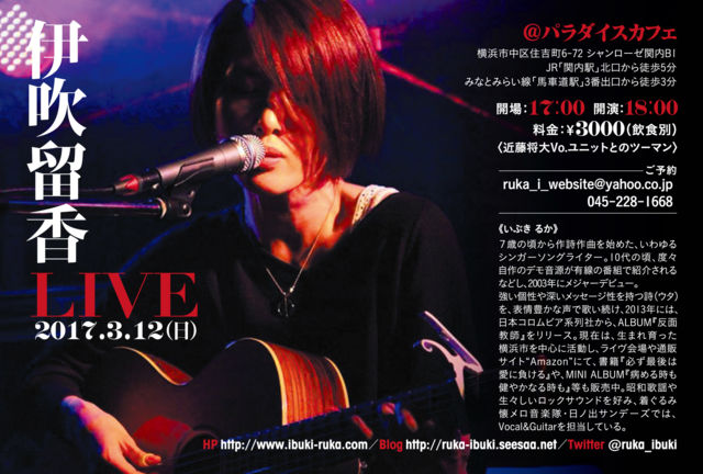 2017ǯ3·î12Æü¡ÊÆü¡Ë ¡÷²£ÉÍ¡Ê´ØÆâ¡¦ÇÏ¼ÖÆ»¡Ë ¡¡¥Ñ¥é¥À¥¤¥¹¥«¥Õ¥§ http://www.paradisecafe2001.com/ ³«¾ì¡§17:00 ³«±é¡§18:00¡Ê½ÐÈÖ¡§19:00¡Á¡Ë ÎÁ¶â¡§¡ï3,000¡Ê°û¿©ÊÌ¡Ë ¶¦±é¡§¶áÆ£¾ÂçVo.¥æ¥Ë¥Ã¥È¡Ò¥Ä¡¼¥Þ¥ó¡Ó -support member- E.Guitar¡§Ä¹ùõ¿¿¸ã Bass¡§¸¶¤¿¤±¤· Drums¡§Ê¡¿¹¹¯ ¡Ê¥¨¥ì¥¯¥È¥ê¥Ã¥¯ÊÔÀ®¡Ë ¡Ú¤´Í½Ìó¡Û045-228-1668