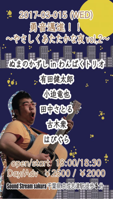 ¢¨Í§°ìϺ¡¡¤ï¤ó¤Ñ¤¯¥È¥ê¥ª¤Ç½Ð±é ¤Ì¤Þ¤Î¤«¤º¤·¡õSound Stream sakura¶¦ºÅ´ë²è ¡ØÍ¦²»î²¿Ê ¡Á¤ä¤µ¤·¤¯¤¢¤¿¤¿¤«¤ÊÌëvol,2¡Á¡Ù ½Ð±é¡§¤Ì¤Þ¤Î¤«¤º¤· in ¤ï¤ó¤Ñ¤¯¥È¥ê¥ª¡¿ÍÅÄ·òÂÀϺ¡¿¾®Ç÷εÌé¡¿ÅÄÃæ¤µ¤È¤ë¡¿¸ÅÌÚ½°¡¿¤Ï¤Ô¤°¤é ³«¾ì18:00¡¡³«±é18:30 Á°Çä¡ï2000(ÅöÆü¡ï2500)¡Ü1drink Sound Stream £óakura http://shizu-sound-stream.com/