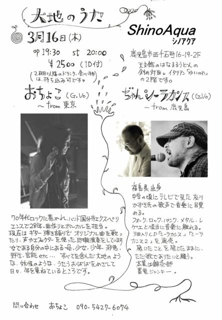 「ShinoAqua」は天文館の「はなまるうどん」の斜め対面 イタリアン「ゆいのや」のビルの2階です。 ワンドリンク付き2500円です。