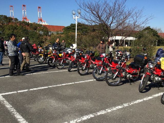 〓仕切り直し〓 〓CTオーナーズミーティングのお知らせ<ハマカブ2017>〓 今年1月順延したハマカブの日程変更連絡です。 ご近所のオーナーの皆さん、覗きにいらっしゃいませんか? 前回は、CT,CCが合計61台も集まりました。 (写真は、2016年開催時の一コマです。) ■日時:2017年3月19日(日) 11:00〜15:00ぐらいまで *中止の告知は、7:00にアップします。 ■集合:横浜市中区本牧ふ頭D突堤 「横浜港シンボルタワー」の2輪駐車場 ・「横浜港シンボルタワー」ホームページ(HP) http://www.y-stower.com/acce