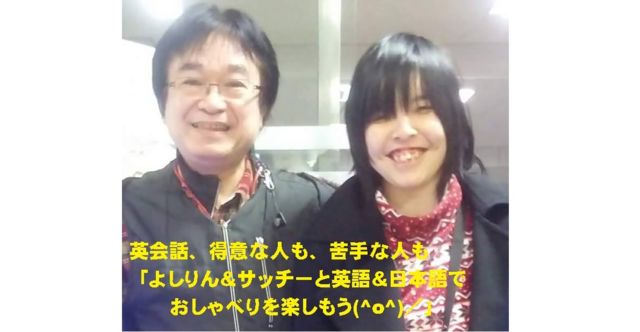 ーーーー簡単お知らせーーーーー 英語バッチリのよしりんと、スピリチュアル・カウンセラーのサッチーとのコラボで何ができるか?みなさんに何が提供できるか? 英語得意な人はよしりんと英語でおしゃべりを楽しんで。 英語苦手な人は、サッチーと一緒に、よしりんに教えてもらいながら、英語と日本語で、ハート、こころ、スピリチュアル、などなど、その時々の流れで、英語を交えながら、おしゃべり、ワーク、歌などなどみなさんがやってみたいということをやっていこうと思っています。 ・3月19日(日) 正午12時〜午後2時 ・横浜踊場地域ケ