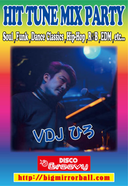 DISCO Groovy 3月の第4木曜日は VDJ ひろ による【HIT TUNE MIX PARTY】SOUL、FUNK、DANCE CLASSICS、70's〜最新HIT曲までMusic Videoを織り交ぜつつかけまくります!リクエストにも出来る限りお応え致しますのでVDJまでお気軽にどうぞ♪ 【音楽】ALL MIX 【開催時間】19:00〜24:00 【料金】 男性:¥2,500/2Drinks+ビュッフェ付 女性:¥2,000/2Drinks+ビュッフェ付 (ビュッフェは数量限定のためなくなり次第終了となります。ご了承ください) 【VDJ】ひろ