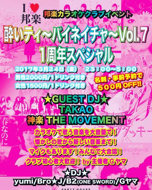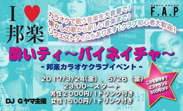 男性:\1,500、女性:\1,000(ワンドリンク&軽食が含まれています)