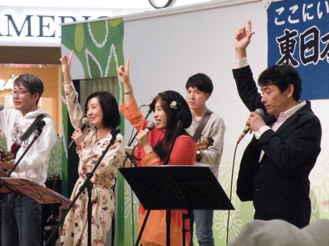 ■第151回 東日本復興応援ライブ 3月24日(金) 20:00〜22:00 松山市大街道商店街内 スペース田中前にて 募金や被災地へのメッセージを集めています。一昨年8月に(株)チャイルド社仙台営業所様を通して、石巻ひがし保育園に鼓笛隊の楽器を寄贈いたしました。 皆様から頂いた募金は、震災で家族を亡くされた子供たちのために寄付させて頂きます。 ☆お知らせ☆ 私たちチームのオリジナルソング「ここにいるよ」のCD販売しています。 1枚500円。そのうち311円は東日本復興応援の募金としてお預かりいたします。 メンバーにお気軽に声をお