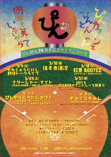 出演:進藤了彦・西田康冶・松崎博彦 ¥2000−(要オーダー) 予約075−344−8370(ぴん)