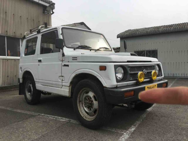 ・メーカー名: スズキ ・車名: ジムニー ・年式: 平成5年 ・グレード: 不明 ・ミッション: 5速MT ・シフトの位置: フロア ・排気量: 660cc(ターボ) ・色: 白 ・リサイクル券の有無:アリ。 ・ガソリンエンジン ・走行距離: 12万7633km(調子維持のため、たまに動かしますので少し伸びると思います。) ・車検の有無:アリ、年度明け4月1日まで。 ・事故歴: 不明。 ・キズや不具合の有無→ ・リアバンパーの曲がりはじめいくつか。またサビはサビだらけとまでいかないものの年式相応にあります。 ・ダッシュボードの小物入れの支点部分が割れ
