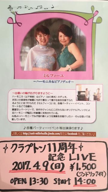£´·î£¹Æü¡ÊÆü¡Ë ¡¡¥ª¡¼¥×¥ó£±£³¡§£³£°¡¡¥¹¥¿¡¼¥È£±£´¡§£°£° ¡Ø¡¡¥ß¥ë¥Õ¥£¡¼¥æ¡¡LIVE¡¡¡ÁCLAPTON£±£±¼þǯµÇ°¡Á¡¡¡Ù CLAPTON£±£±¼þǯ¤òµÇ°¤·¡¢ ·ëÀ®¤«¤é3¼þǯ¤Î¡Ø¥ß¥ë¥Õ¥£¡¼¥æ¡Ù¤¬ ´¶¼Õ¤Îµ¤»ý¤Á¤ò¹þ¤á¤Æ ¤ªÆÏ¤±¤·¤Þ¤¹¡£ ½Ð±é ¡Ø¥ß¥ë¥Õ¥£¡¼¥æ¡Ù¡¦¡¦¡¦¡¦¥Ï¡¼¥â¥Ë¥«¡Ê¸ø²¼ÌÀ²»¡Ë¡õ¥Ô¥¢¥Î¡Ê½Ð¸ýÁǸ÷¡Ë¤Î¥Ç¥å¥ª ¡Ø¥¯¥é¥×¥È¥ó¡Ù¡¦¡¦¡¦¡¦¡¦¡¦¡¦·ëÀ®È¾Ç¯¤Î¥Ï¡¼¥â¥Ë¥«¥°¥ë¡¼¥× ¡¡¡¡¡¡¡¡¡¡¡¡¡¡¡¡¡¡¡¡¡¡¡¡¡¡¡ÊCLAPTON¥Þ¥¹¥¿¡¼ÃæÀî¤â¤¬¤ó¤Ð¤ê¤Þ¤¹¡£¡Ë ¥ß¥å¡¼¥¸¥Ã¥¯¥Á¥ã¡¼¥¸ £±¡¤£µ£°£°±ß¡Ê¥ï¥ó¥É¥ê¥ó¥¯ÉÕ¡Ë