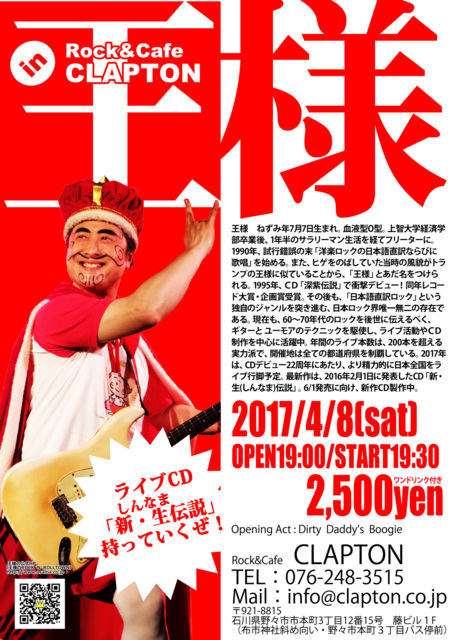 £´·î£¸Æü¡ÊÅÚ¡Ë ¡¡¡¡PM£·¡§£°£°¥ª¡¼¥×¥ó¡¡PM£·¡§£³£°¥¹¥¿¡¼¥È ¡Ø ²¦ÍÍ CLAPTON £±£±¼þǯµÇ°£Ì£É£Ö£Å ¡Ù £Ã£Ì£Á£Ð£Ô£Ï£Î£±£±¼þǯ¤òµÇ°¤·¤Æ¡ª¡ª ¤Þ¤¿¤Þ¤¿¡¢¤ä¤Ã¤ÆÍè¤Þ¤¹¡ª¡ª ľÌõ¥í¥Ã¥¯¤Î²¦ÍÍ¡ª¡ª £±Ç¯¤Ö¤ê£¹ÅÙÌܤÎCLAPTON LIVE¡ª¡ª ÆüËܤΥí¥Ã¥¯¡¦¥Õ¥¡¥ó¤Ë¾×·â¤òÍ¿¤¨¤¿¡Ø²¦Í͡٤¬ Ì»Ô¤Ë¤ä¤Ã¤ÆÍè¤Þ¤¹¡ª¡ª ²¦Íͤ¬À¸¤ÇÈäϪ¤¹¤ë¥®¥¿¡¼¤Î¥¹¡¼¥Ñ¡¼¡¦¥Æ¥¯¥Ë¥Ã¥¯¤È ÆüËܸìËÝÌõ²Î¾§¤¬´ÑµÒ¤ÎÅٴΤòÈ´¤¤Þ¤¹¡ª À¸¤Ç¸«¤Ê¤±¤ì¤Ðʬ¤«¤é¤Ê¤¤¾×·â¡ªÉ¬¸«¤Ç¤¹¡ª¡ª ¥ª¡¼¥×¥Ë¥ó¥°Act¡¡ Dirty Daddy's Boogie ¡ÊÀÐÀ¿Íµ¤¼ÂÎÏ⣱¥Ö¥ë¡¼¥¹¥Ð