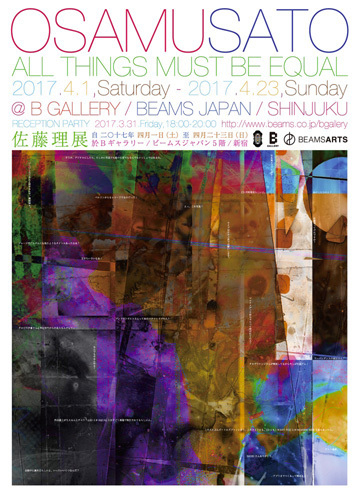 ゲーム・音楽・グラフィックデザインなど、ジャンルにとらわれず 様々な表現で活動されているアーティストの佐藤 理氏がこの春東京で展覧会を開催します。 この展覧会に合わせて、19年ぶりの新作CD発売と関連イベントも行われます。 会期:2017年4月1日(土)〜2017年4月23日(日) 会場:Bギャラリー(新宿ビームス ジャパン5階) 詳細は会場のBEAMS JAPANのサイトにて http://www.beams.co.jp/news/302/