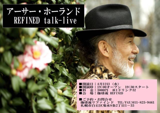 出演 アーサー・ホーランド 料金 3,000円(1drink付) お問い合わせ 011-825-9461(珈琲淹REFINED)