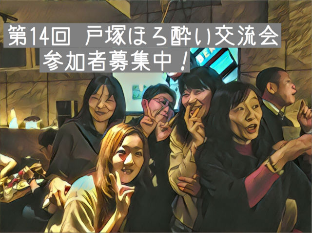 お世話になります。 第14回 戸塚ほろ酔い交流会 以下の通りお知らせいたします。 地元で飲もう、帰りが楽です! 色々な職種の方や面白い方が参加されます! 初めての方でも是非参加ご検討ください! 日 時:2017年5月20日 土曜日 時 間:18時30分〜20時30分 場 所:戸塚駅付近で調整中 持ち物:名刺(強制ではありません) 服 装:自由 会 費:4.000円(飲み放題付き) 締切日:5月10日 水曜日 17時まで(以降の参加については、お問い合わせ下さい) 参加方法 フェイスブックまたは、申込みフォームより、ご登録をお願い