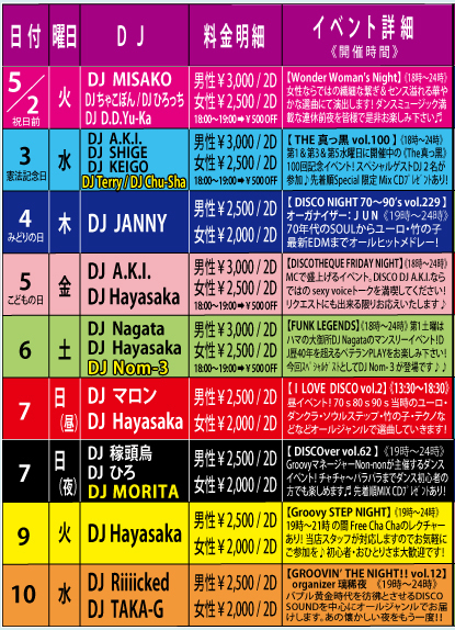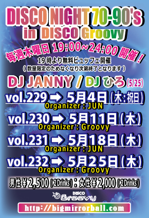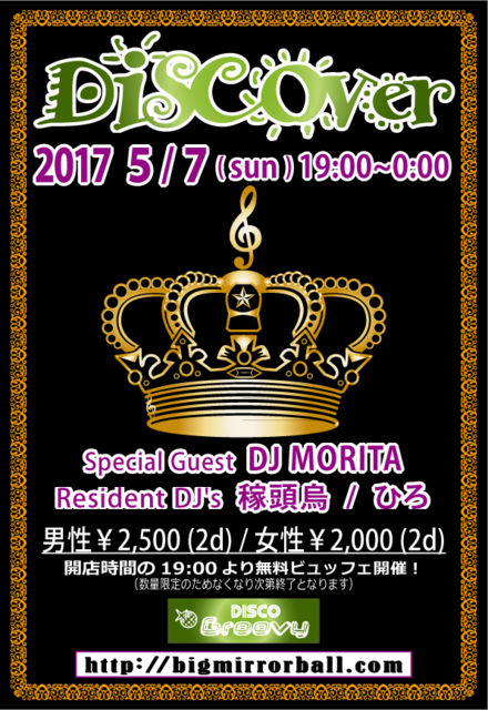 DISCO Groovy ¥Þ¥Í¡¼¥¸¥ã¡¼Non-non¤¬¼çºÅ¤¹¤ë¥À¥ó¥¹¥¤¥Ù¥ó¥È¡Ú¥Ç¥£¥¹¥«¥Ð¡¼¡Û¥Á¥ã¥Á¥ã¡Á¥Ñ¥é¥Ñ¥é¤Þ¤Ç ¥À¥ó¥¹½é¿´¼Ô¤ÎÊý¤Ç¤â³Ú¤·¤á¤Á¤ã¤¤¤Þ¤¹¢ö ¡úº£²ó¤ÏÀèÃå20̾ÍͤËDJ MORITA¥ª¥ê¥¸¥Ê¥ëMIX CD¥×¥ì¥¼¥ó¥È¡ª¤´ÍèŹ¤Ï¤ªÁáÌܤˡª ¢¾Ü¤·¤¯¤Ï¤³¤Á¤é¤â¤´Í÷¤¯¤À¤µ¤¤¢ ¡úDISCOver¥Ú¡¼¥¸¢ªhttps://www.facebook.com/discover.1stsunday/ ¡ÚSpecial Guest¡Û DJ MORITA ¡ÚResident¡Û DJ ²ÔƬ±¨ ¡õ DJ ¤Ò¤í ¡Ú²»³Ú¡Û¥ª¡¼¥ë¥¸¥ã¥ó¥ë Dance Classics¡¢Soul¡¢Funk¡¢R&B¡¢Hip-Hop¡¢EDM¡¢Eurobeat¡¢Techno¡¢etc... ¡Ú³«ºÅ»þ´Ö¡Û 19:00¡Á24:00