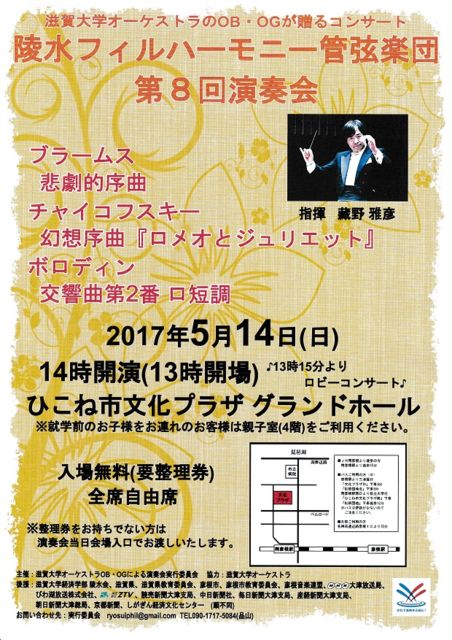 【曲目】 ブラームス/悲劇的序曲 ニ短調 op.81 チャイコフスキー/幻想序曲「ロメオとジュリエット」 3rd Version 1880 ボロディン/交響曲 第2番 ロ短調 op.5 【管弦楽】 陵水フィルハーモニー管弦楽団 【客演指揮】 藏野 雅彦