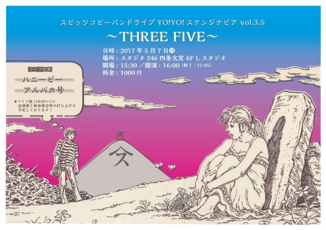 Âçºå¤Î¥¹¥Ô¥Ã¥Ä¥Õ¥¡¥ó¤¬¥¹¥Ô¥Ã¥Ä¥Õ¥¡¥ó¤Î¤¿¤á¤Ë³«ºÅ¤¹¤ë¥³¥Ô¥Ð¥ó¥é¥¤¥Ö¥¤¥Ù¥ó¥È¡¢ ¡ÖYO!YO!SKENDINAVIA vol.3.5¡ÁTHREE FIVE¡Á¡×¤¬·èÄꤷ¤Þ¤·¤¿¡£ º£²ó¤â¥¹¥Ô¥Ã¥Ä¥ª¥ó¥ê¡¼¤ÇÌó2»þ´Ö¤Î¡Ö¥é¥¤¥Ö¥¤¥Ù¥ó¥È¡Ê°ì¼¡²ñ¡Ë¡×¤È¡¢ »²²Ã¼Ô¤Ç¸òή¤ò¿Þ¤ë¡Ö°û¤ß²ñ¡ÊÆó¼¡²ñ¡Ë¡×¤ò¤ª¤³¤Ê¤¤¤Þ¤¹¡£ ¥¹¥Ô¥Ã¥Ä¤ò¹¥¤¤Ê¿ÍƱ»Î¤Ç ²Î¤Ã¤¿¤ê¤·¤ã¤Ù¤Ã¤¿¤ê ¤¢¤ë¤¤¤Ï¿©¤Ù¤¿¤ê°û¤ó¤À¤ê ³Ú¤·¤¤¤Ò¤È¤È¤¤ò²á¤´¤·¤Þ¤·¤ç¤¦¡ª ¢¡½Ð±é¥³¥Ô¡¼¥Ð¥ó¥É(50²»½ç) ¡¦¥¢¥ë¥Ñ¥«¹æ ¡¦¥Ï¥Ë¡¼¥Ó¡¼(¥ª¡¼¥×¥Ë¥ó¥°act) ¢¡Æü»þ 2017/5/7(Æü) ¡¦³«¾ì ¡Ä15:30 ¡¦¥é¥¤¥Ö¡Ê°ì