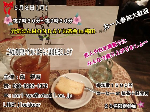 £µ·î£¸Æü(·î)Ìë7»þ30ʬ¡ÁÌë9»þ30ʬ Â裳²ó¢ö¸µµ¤¤Þ¤óMONDAY¤ªÃã²ñ in ÇßÅÄ ¤¤¤Ä¤â¤¢¤ê¤¬¤È¤¦¤´¤¶¤¤¤Þ¤¹(*^^*) £µ·îÏ¢µÙÌÀ¤±¤Î·îÍËÆü¢ö ¥ª¥·¥ã¥ì¤Ê¥«¥Õ¥§¤Ç¥ê¡¼¥º¥Ê¥Ö¥ë¤Ê¡¢¤ªÃã²ñ³«ºÅ¤·¤Þ¤¹(^^) ¡ùͧ㤬Íߤ·¤¤¢ö ¡ù½Ð²ñ¤¤¤¬Íߤ·¤¤¢ö ¡ù¥³¡¼¥Ò¡¼¡¢¤ª¹ÈÃã¡¢¥±¡¼¥¤¬¹¥¤¢ö ¡ù¿Í¸«ÃΤê¤Ê¤ó¤À¤±¤É¡Ä ¡ù°ì¿Í»²²Ã¤Ç¤âÂç¾æÉס© ¡ùÂçºå¤Ë½é¤á¤Æ¤¤¿¤è¢ö ¡ùÏ¢µÙ¤â½ª¤ï¤Ã¤Æº£½µ¤â»Ï¤Þ¤Ã¤¿¤è¡Ä(--;) ¤½¤ó¤Ê³§¤µ¤ó ¤µ¤¡¡Á¤ä¤Ã¤Æ»²¤ê¤Þ¤·¤¿¢ö ÇÐÍ¥¡¢³¨ÉÁ¤¤È¥¢¥¦¥È¥É¥¢¤Ë¥¦¥Ã¥¥¦¥¤Ê»ä¤¬ £Ç£×¤ÎÀª¤¤¤½¤Î¤Þ¤Þ¤Ë¡¢·îÍËÆü¤«¤é³Ú¤·¤¯¤Ê¤Ã¤Æ¤·¤Þ¤¦¢ö¤ªÃã²ñ³«ºÅ¤·¤Þ