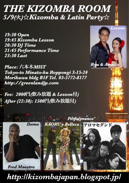 Kizomba & Latin party hosted by Ryu & Amalia at MIST Roppongi. Free drinks and lesson included.