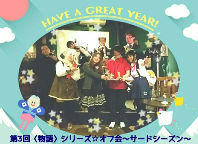 第4回【〈物語〉シリーズオフ会】 〜フォースシーズン〜 ●幹事より挨拶● 初めまして、幹事の36-miro-と申します 〈物語〉シリーズが好きな方達が集まり、楽しめられるオフ会にしたいと考えています 正直、私の周りには〈物語〉シリーズを知ってる方はいても、好きとか詳しい方はあまりいない為、オフ会を通し、皆様と交流を深められたら嬉しいです ●参加資格 〈物語〉シリーズの本が好きす♪ 〈
