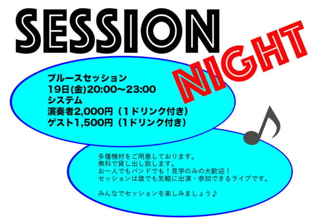ブルースセッション開催します。 皆さんの参加をお待ちしています!