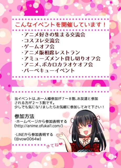 ¢£Âçºå¤Î¤ª¤·¤ã¤ì¤Ê¤ªÅ¹Âߤ·ÀÚ¤ê¤Ç60̾Í͸ÂÄê¤ÇÊ¿Æü¥¢¥Ë¥á¥ª¥Õ²ñ³«ºÅ¤·¤Þ¤¹¢£ º£²ó¤Ï¡¢¤Ê¤ó¤È80̾ÍÍÊ罸¤ÎÃæ¡¢²ÐÍ˸ÂÄê´ë²è¤Ç½÷À¤ÎÊý̵ÎÁ¤Ç»²²Ã½ÐÍè¤Þ¤¹¡ÊÃËÀ¤ÎÊý¤â3000±ß¤Ç°û¤ßÊüÂê¤ÈÎÁÍý¤Ä¤¤¤Æ¤¤Þ¤¹¡Ë ¥¤¥Ù¥ó¥ÈÆâÍÆ¤Ï¡¢¥¢¥Ë¥á¹¥¤¤Î½¸¤Þ¤ë°û¤ß²ñ¥á¥¤¥ó¤Î¸òή²ñ¥¤¥Ù¥ó¥È¤Ç¤¹(°ì¤Ä¤Ç¤â²¿¤«¹¥¤¤Ê¥¢¥Ë¥áºîÉʤ¬¤¢¤ê¤Þ¤·¤¿¥ª¥Ã¥±¡¼¤Ç¤¹) Ʊ¤¸¼ñÌ£¤ÎÊý¤Î»²²Ã¼Ô¤Ð¤«¤ê¤Ê¤Î¤ÇÀ¹¤ê¾å¤¬¤ë¤³¤È´Ö°ã¤¤¤Ê¤·¡ª¡ª¡ª º£²ó¤Î¥ª¥Õ²ñ¤Ï¡¢¥Ä¥¤¥Ã¥¿¡¼¤Ê¤É¤Ç¤âÊ罸¤·¤Æ¤ë¤¿¤á¿Í¿ô¸Â¤ê¤¬¤¢¤ê¤Þ¤¹¤Î¤Ç¾¯¤·¤Ç¤âµ¤¤Ë¤Ê¤ê¤Þ¤·¤¿¤é¤ªÁáÌܤ˻²²ÃɽÌÀ¤Î¤Û¤¦¤è