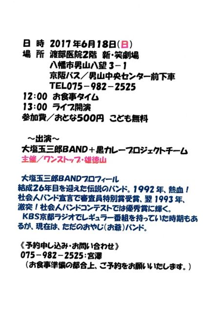 µÞ¤Ê¹ðÃΤǤ¹¤ß¤Þ¤»¤ó¡£ ¡ÊÏ¢Íí¤¬ºòÆüÆÏ¤¤¤¿¤Î¤Ç¡Ë ¤Ê¤ª¡¢¥Á¥±¥Ã¥È¤È¤«¤³¤Á¤é¤Ç¤Ï¤Ê¤¤¤Î¤Ç¡¢Ä¾ÀܤªÅ¹¤ÎÊý¤Ë¤ªÌ䤤¹ç¤ï¤»¤ò¡¢ ÂçÌîÀèÀ¸¤Î¥é¥¤¥Ö¤Ë¹Ô¤«¤ì¤ëÊý¤Ïɬ¤º¤ªÅ¹¤ÎÊý¤Ë¤´Í½Ìó ¡Ê£°£·£µ¡Ý£¹£¸£²¡Ý£²£µ£²£µ¡¡ÅÏÉô°å±¡¡¦¥ï¥ó¥¹¥È¥Ã¥×ͺÆÁ»³¡¡µÜß·¤µ¤ó¤Þ¤Ç¡Ë ¤ò¤ª´ê¤¤¤·¤Þ¤¹¡£ ¡Ø¾Ð·à¾ì³«ºÅ¡ª¡¡£¶·î£±£¸Æü¡ÊÆü¡Ë¡¡¥«¥ì¡¼¥é¥¤¥Ö¢ö¡Ù º£²ó¤ÏȬȨ»Ô¤ÎÅÁÀâ¤Ç¤¢¤Ã¤¿¡Ê¡©¡Ë¡ØÈ¬È¨¹õ¥«¥ì¡¼¡Ù¤ò¥×¥í¥¸¥§¥¯¥È¥Á¡¼¥à¤µ¤ó¤¬Éü¹ï¤·¤Æºî¤ê¤Þ¤¹¡£ ¤Þ¤º¤Ï¤½¤Î¡Ø¹õ¥«¥ì¡¼¥é¥¤¥¹¡Ù¤ò¥é¥ó¥Á¤Ç¤´¾ÞÌ£¤·¤Æ¤¤¤¿¤À¤¡¢ ¤½¤Î¸å¤ËÂçÌîÀèÀ¸Î¨¤¤¤ë¡ØÂç±ö¶Ì»°Ïº£Â£Á
