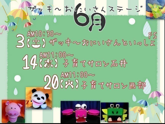 ザッキ〜おにいさんの保育園まわりも今年で13年目 ぶーたん・ランラン・ペッカー そして怪獣グースカとピンキー引き連れ 今月も 親子のもとに ぬくもりのステージ届けに行きます