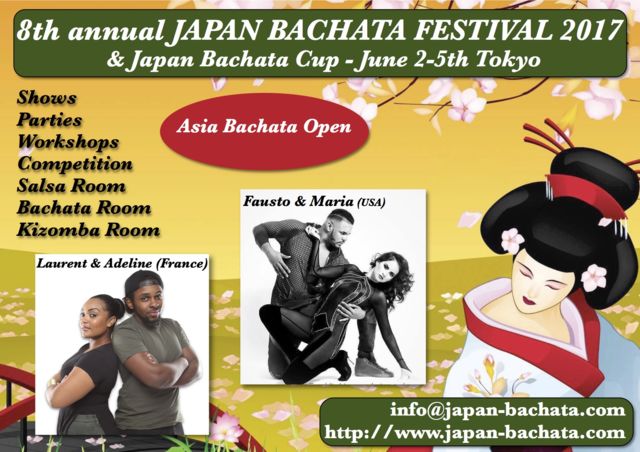 ¡úÂè8²óÌÜJAPAN BACHATA FESTIVAL 2017¡ú ¡ùJAPAN BACHATA CUP & ASIA BACHATA OPEN¡ù 6·î2¡Á5Æü¡¢Åìµþ ÁÇÀ²¤é¤·¤¤³¤³°¡¦¹ñÆâ¥À¥ó¥µ¡¼¤È¿Íµ¤DJ¤Ë¤è¤ë¥ï¡¼¥¯¥·¥ç¥Ã¥×¡¢¥Ñ¥Õ¥©¡¼¥Þ¥ó¥¹¤ÈÇ®¤¤¥×¥ì¥¤¤ÇÀ¹¤ê¾å¤²¤Þ¤·¤ç¤¦¡ªÅÚÍËÆü¤Ï¥Ð¥Á¥ã¡¼¥¿¥Õ¥§¥¹¥Æ¥£¥Ð¥ë¤½¤·¤ÆÆüÍËÆü¤Ï¥Ð¥Á¥ã¡¼¥¿¥«¥Ã¥×¤È¥¢¥¸¥¢¥Ð¥Á¥ã¡¼¥¿¥ª¡¼¥×¥ó¤ÇÆóÆü´Ö¤ò³Ú¤·¤â¤¦¡ª ¥Õ¥ê¡¼¥¹¥¿¥¤¥ë¥Ú¥¢¥³¥ó¥Ú¥Æ¥£¥·¥ç¥ó»²²Ã¼Ô¤òÊ罸¤·¤Æ¤Þ¤¹¡ªÅöÆü16:30¤Þ¤Ç¥¨¥ó¥È¥ê¡¼½ÐÍè¤Þ¤¹¡£ JAPAN BACHATA CUP¤ÎÁ´¤Æ¤Î¥«¥Æ¥´¥ê¤Î¾å°Ì£³¥Ú¥¢¤Ë¤Ï¥È¥í¥Õ¥£¡¼Ëô¤Ï¥á¥À¥ë¤¬Â£Ä褵¤ì¤ë¾¡¢¾Þ¾õ¤ÈÉû¾Þ¤¬Â£¤é¤ì