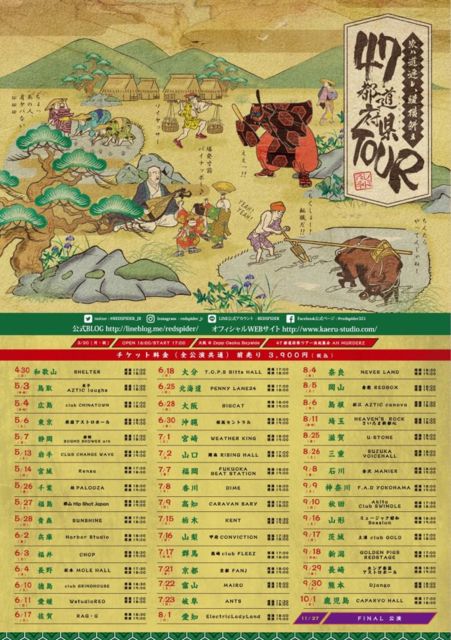 福井 @CHOP (福井県福井市花堂東1-18-6) 開場 18:30 / 開演 19:00 チケット料金 前売 3,900円(税込) ※ドリンク代別途必要です ※未就学児入場不可 (出演) RED SPIDER 他 ■チケット発売所■ ローソンチケット 0570-084-005(Lコード: 54087) http://l-tike.com/search/?keyword=54087 ●チケット発売日 3月8日19:00よりチケット発売開始 お問い合わせ カエルスタジオミュージック06-6636-0226