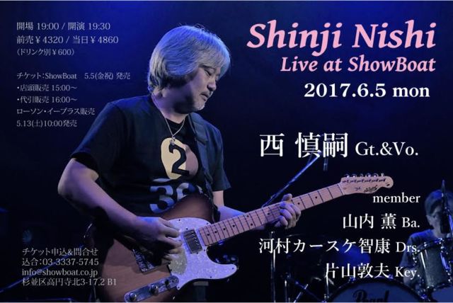 2017.6.5·îÍËÆü À¾ ¿µ»Ì ¤µ¤ó¥ï¥ó¥Þ¥ó¥é¥¤¥Ö³«ºÅÃפ·¤Þ¤¹¡ª À¾ ¿µ»Ì Live at ShowBoat ½Ð±é À¾ ¿µ»Ì (Gt.&Vo) »³Æâ ·° (Ba.) ²Ï¼¥«¡¼¥¹¥±ÃÒ¹¯ (Drs.) ÊÒ»³ÆØÉ× (Key.) ³«¾ì19:00 ³«±é19:30 Á°Çä¡ï4320/ÅöÆü¡ï4860 ¥Á¥±¥Ã¥È¤Ï ¥·¥ç¡¼¥Ü¡¼¥È¡¢¥í¡¼¥½¥ó(L:71268)¡¢¥¤¡¼¥×¥é¥¹ ¤Ë¤ÆÈ¯ÇäÃæ¤Ç¤¹¡£ Ìä¹ç¤»¡Ê²ñ¾ì¡Ë¡§ ShowBoat¡Ê¥·¥ç¡¼¥Ü¡¼¥È¡Ë ¢©166-0002 ÅìµþÅÔ¿ùʶè¹â±ß»ûËÌ3-17-2 ¥ª¡¼¥¯¥Ò¥ë¹â±ß»ûB1 03-3337-5745 / showboat.info@gmail.com http://www.showboat1993.com/