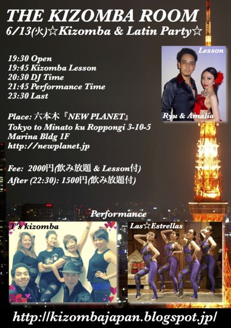 Kizomba & Latin party hosted by Ryu & Amalia at NEW PLANET Roppongi. Free drinks and lesson included.