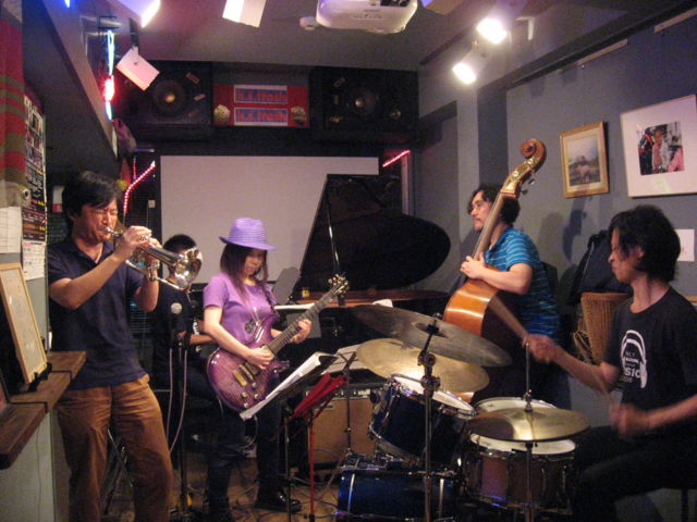 ジャムセッションで〜す。プロと共演のチャンスです。 ホストメンバーは、聴くだけでも楽しい、全員早稲田ジャズ研出身。 ピアノの宮前幸弘さんは、ベストセラーの教則本を出していました。ピアノの皆さん、あなたの悩みが解決するかもしれません。 ベースの三橋洋介さんは、ニューヨークでの活動が長く、数年前に帰国しました。演奏活動の傍ら、船橋グッドタイムミュージックスクールで、後進の指導にあたっています。 ドラムの谷昭利さんは、ジャズバンドからもロックバンドからも引っ張りだこ。 頼れるホストバンドとと