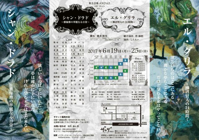 初めまして!6/19(月)〜6/25日(日)舞台に立ちます!全てはホームレスの描いた二冊の小説から始まる…2つの物語‼️ けっこうチケットがすぐに完売しそうですので予約はお早めに‼ 僕の役はダブルキャストです、★がついている回にメインででます!そこがオススメです! 集合芸術ANDAZ公演 『シャン・ドラド〜雅優雅の華麗な日常〜』 『エル・グリラ〜柳沼賢人の24時間〜』 6月19日(月)〜25日(日) @ ザムザ阿佐ヶ谷 脚本/桃井俊英 演出/柞梯梧 チケット代 初日3000円 平日昼3300円 平日夜3500円 土日3800円 19日(月)『エル・グリ