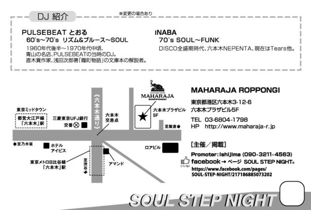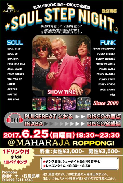 ¡ú¡ú¡úSOUL STEP NIGHT(ÅÐÏ¿¾¦É¸)¡ú¡ú ÍÙ¤ê¤ò³Ð¤¨¤ËSTEP¤ò³Ð¤¨¤ËDISCO¤ËÄ̤¤µÍ¤á¤¿¡¢¤Þ¤µ¤Ë DISCO¸¶ÅÀ»þÂå¡ÁDISCOÁ´À¹´ü¤Î ¤¢¤ÎÎɤ»þÂå¤ò¡¢Åö»þ¤ÎDJ¤Ë¤è¤ê¤ª³Ú¤·¤ß¤¯¤À¤µ¤¤¡£ ¢öDISCO¸¶ÅÀ»þÂå¤Ï¡¢PULSEBEAT¤È¤ª¤ë ¡úľÌÚ¾Þºî²È¤ÎÀõÅļ¡ÏºÃø[²âĮʪ¸ì]¤ËÀÐÅĵü¤¬²òÀâ¤Ç½Ð¤Æ¤ª¤ê¤Þ¤¹¡ª ¢öDISCOÁ´À¹´ü»þÂå¤ÏÅö»þÏ»ËÜÌÚ¥¹¥¯¥¨¥¢¥Ó¥ë¤Î¥Í¥Ú¥ó¥¿¤ÎDJ°ðÍÕ¤¬Ã´Åö¤·¤Þ¤¹¡£ ½é»²²Ã¤Î¤ªµÒÍͤâ¥ì¥Ã¥¹¥ó¥¿¥¤¥à¤â¤¢¤ê¤Þ¤¹¤Î¤Ç¤´°Â¿´¤¯¤À¤µ¤¤¡£ [Æü»þ] 6/25(Æü)18:30¡Á23:30 »þ´Ö¤Ï18:30¤«¤é¤Ç¤¹¤Î¤Ç¡¢¤ª´Ö°ã¤¤¤Ê¤¤¤è¤¦µ¹¤·¤¯¤ª´ê¤¤