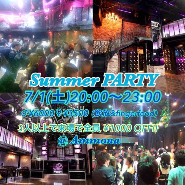 ◇7/1(土)20:00〜 男性78名(残22名)、女性82名(残18名)のご予約頂いてます! 各200名で予約締切致します。 参加をお考えの方はお早めの参加表明お願い致します♪ 参加枠が埋まり次第、予約締め切り致しますので、参加される方はお早めに参加表明お願い致します。 人数の集計の表示の更新ができない可能性があり、急遽予約締め切りになる事もあるかもしれませんが、その際は申し訳ありません。 コメントに記入やメッセージ頂いても返信できない場合がありますので、ご予約やご質問は必ずメールまたは予約フォームよりお願い致します。 https: