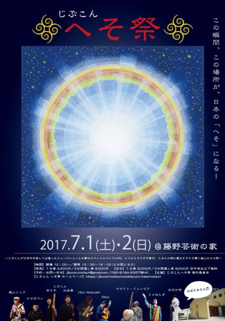 こんにちは、じぶこんです。 ヽ(*´∀`) いかがお過ごしでしょうかー? じぶこんは、お陰様で16周年を迎える事ができました。 皆々様に見守っていただけたお陰様です、本当にありがとうございます。 (*≧∀≦*) そして遂に、じぶこんが日本中を旅して出会った凄腕ミュージシャン達が日本中から集結して、音を合わせるスペシャルなイベントを企画しました! 久しぶりのじぶこんバンドLIVEです! 皆さん、自信を持って本当にスンゴイ方々ばかりなので、絶対スンゴイ事になりますので、良かったらご参加ください。 いてくれたら