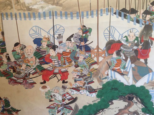 小一領神社が来年創建1000年を迎えます。 小一領神社は、もと柳本大明神と称され、現在の川万屋旅館(新町)の敷地内にありました。 天文5年(1536)御船城征伐に際して大宮司阿蘇惟豊公の嫡男千寿丸(13歳)は大将軍として当時の柳本大明神の神前にて出陣式を行い、身につけていた小さい鎧一式を社前に奉納して戦勝祈願を行いました。このことから、以後小一領神社と呼ばれるようになりました。 絵は、当時の出陣式の模様を嘉永6年(1853)に描いた小一領神社に伝わる絵巻物の一部です。 今回の定例会では、この御船