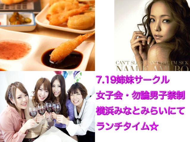 ○♪7.19(水)13時〜横浜みなとみらいにて食べ飲み放題☆ 姉妹コミュLINE女子友女子会横浜川崎東京☆彡 平日ランチイベント 担当 女子会リーダー おきゃむ☆ 日程のお知らせ・LINE友達飲み会オフ会横浜・東京 女子会のLINEグルチャもあります、勿論男子禁制です その際は問い合わせから女子会のグルチャ希望と送って下さいね 女子会リーダーに引き継ぎますので 基本グルチャの窓口は一緒です http://www.ckprivate.net/event/contents_f/index.html 男子禁制の女子トークで盛り上がりましょ?