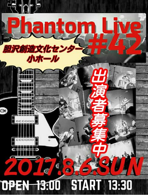 奥州市で42回目を迎える PHANTOM LlVE 高校生からベテランまで 年齢層の幅を越えて バンドマンの気持ちに応えて来ました。 初めてライブするバンドも多く一度出演したら何度も ステージに立ちたいと言う声も多いです。 岩手県で活動しているバンドのために多くの繋がりを深めていきたいので 出演バンドを募集しております。 PHANTOM LIVE vol.42 開催決定 2017/08/06(SUN) 総合出演バンド10組予定 新会場 胆沢文化創造センター 小ホール 入場 400円 OPEN/13時00分 START/13時30分 当日スケジュール