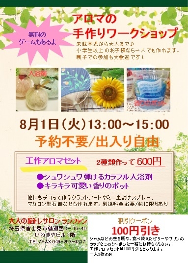 8/1²ÐÍË 12»þȾ¡Á Ëèǯ¹±Îã²Æ¤Î¥ï¡¼¥¯¥·¥ç¥Ã¥×¥¤¥Ù¥ó¥È¤ò¹Ô¤¤¤Þ¤¹¡£ ¼«Í³¸¦µæ¤Ë¤â♡1day½¬¤¤»ö¤Ë¤â♡ Âç¿Í¤Î¤ß¤Ç¤â¤ªµ¤·Ú¤Ë¤´»²²Ã²¼¤µ¤¤¡£ ¤´Í½Ìó¤Ï¥³¥á¥ó¥È¤Þ¤¿¤Ï¥á¥Ã¥»¡¼¥¸¤«¤é¾µ¤ê¤Þ¤¹¡£¤¿¤¯¤µ¤ó¤Î¤´»²²Ã¤ªÂÔ¤Á¤·¤Æ¤ª¤ê¤Þ¤¹♡