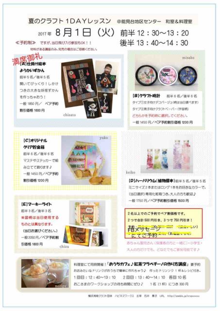 ¥¢¥í¥Þ¤Î¼êºî¤ê¥ï¡¼¥¯¥·¥ç¥Ã¥× ̤½¢³Ø»ù¤«¤éÂç¿Í¤Þ¤Ç¡£ ¾®³ØÀ¸°Ê¾å¤Î¤ª»ÒÍͤʤé°ì¿Í¤Ç¤âºî¤ì¤Þ¤¹¡£ ¿Æ»Ò¤Ç¤Î»²²Ã¤âÂç´¿·Þ¤Ç¤¹¡£ ¥·¥å¥ï¥·¥å¥ïÃÆ¤±¤ë¥«¥é¥Õ¥ëÆþÍáºÞ ¥¥é¥¥é²Ä°¦¤¤¹á¤ê¤Î¥Ý¥Ã¥È ¾åµ2¼ïÎà¤òºî¤Ã¤Æ600±ß¤Ç¤¹¡£ ͽÌóÉÔÍפǤ¹¤¬¡¢³ä°ú¤´´õ˾¤ÎÊý¤Ï¡¢²¼µ¿½¤·¹þ¤ß¥Õ¥©¡¼¥à¤Ç¡Ömixi¡×¤òÁªÂò¤·¤Æ¤¯¤À¤µ¤¤¡£ »öÁ°¿½¤·¹þ¤ß¤Î¾å¡¢¥¸¥ã¥à¤Ê¤É¤Î¶õ¤ÉӤ俩¤Ù½ª¤¨¤¿¥¼¥ê¡¼¤ä¥×¥ê¥ó¤Î¥«¥Ã¥×¤ò¤ª»ý¤Á¤¤¤¿¤À¤¯¤È¡¢100±ß°ú¤¤Î500±ß¤È¤Ê¤ê¤Þ¤¹ ¾¤Ë¤â¡¢¥Ç¥³¤Ã¤Æºî¤ë¥¯¥é¥Õ¥È¥Î¡¼¥È¤ä¥ß¥ËÃî¤è¤±¥¹¥×