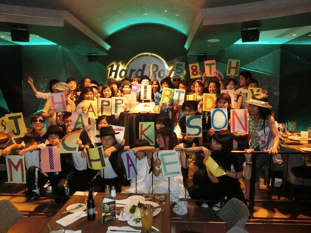 8月29日(火)18時00分〜20時 30分 今年も ハードロックカフェUSJ店において 皆で集まって ゲリラbeat it&ハッピーバースディソングで一緒にお祝いしませんか? 毎年ハードロックカフェ様のご厚意により 豪華なMJケーキのプレゼントをいただいております。 今年も期待度大です(笑) 席をキープしますので 参加希望者はポチッとするか書き込みを できるだけ早くお願いします。 当日欠席してもキャンセル料はかかりません。 (夏休みの店内は混雑する可能性が高いので ご協力宜しくお願いします) 参加費は無料で