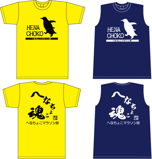 一部のチーム外の方にも好評のへなちょこマラソン部Tシャツ。 今年も作成することになりました〜! 今回で第7弾になります。 9月末の「武庫川くすのき駅伝」に間に合うように作成したいと思います! 年に1回となりますので・・・・ 新規参加者だけでなく 昔からのメンバーさまの買い替え用としても ご検討いただけますと幸いです!! 【デザインについて※重要!】 例年通りの「へなちょこ魂」デザインを予定しております(添付画像参照) 【希望者は・・・】 ・Tシャツの種類(半袖 or ノースリーブ) ・サイズ