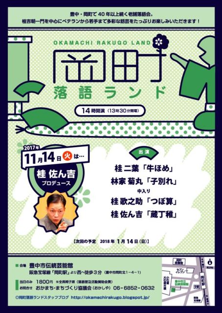 9月30日(土)島之内寄席/大阪市立中央会館 9月30日(土)ギャラリーアライ「裏」甲子園寄席 10月1日(日)桂佐ん吉落語会/西宮市・ギャラリーストラッセ 10月6日(金)カレーと佐ん吉/アララギ 10月9日(祝)大昌寺寄席/川西・大昌寺 10月10・11・12・14・15日 天満天神繁昌亭昼席 10月16日(月)とびっきり寄席/守口文化センター地下和室 10月19日(木) 動楽亭昼席 10月20日(金) 動楽亭昼席 10月20日(金)中之島深夜寄席/中之島SPINING 10月22日(日)天満天神繁昌亭昼席 10月24日(火)国立文楽劇場/桂吉朝十三回忌追善落