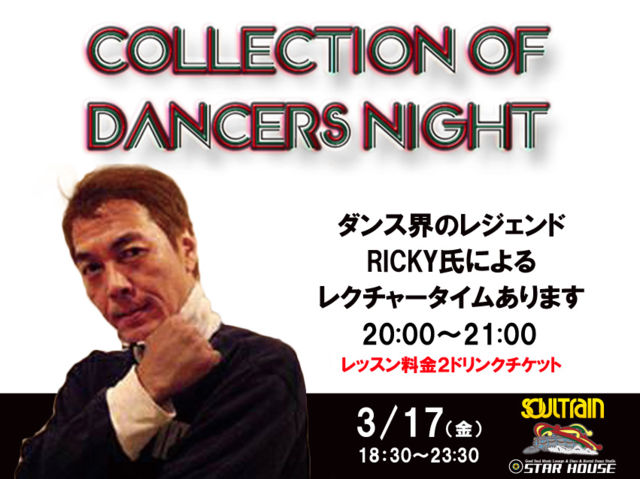 ¥¤¥Ù¥ó¥È¾ÜºÙ ¥¤¥Ù¥ó¥È̾¡§COLEECTION OF DANCERS NIGHT ¥³¥ó¥»¥×¥È¡§SOULDANCE¡¦MUSIC¤òÃΤê¿Ô¤¯¤·¤¿ ¡¡¡¡¡¡¡¡¡¡¡¡¥ì¥¸¥§¥ó¥É¥À¥ó¥µ¡¼RICY¤¬DJ¤Î·î¤Ë°ìÅÙ¤ÎSP¥¤¥Ù¥ó¥È!! ¡¡¡¡¡¡¡¡¡¡¡¡¥ê¥Ã¥¡¼¥À¥ó¥¹¥ì¥¯¥Á¥ã¡¼³«ºÅ ¡¡¡¡¡¡¡¡¡¡¡¡£±9¡§0£°¡Á20¡§0£°¡¡2DTICET¡¡ Æü»þ¡§9·î15Æü¡Ê¶âÍˡˡ¡£±8¡§30¡Á23:30¡¡ ²ñ¾ì¡§STARHOUSE¡¡¿ÀÆàÀºÂ´Ö»ÔÁêÌϤ¬µÖ5-1-24 ÎÁ¶â¡§ÃËÀ¡¡½÷À¡¡\2,000¡¡2D(½÷À1D¥µ¡¼¥Ó¥¹) £Ä£Ê¡§RICKY¡¿Âç¤Á¤ã¤ó Ìä¹ç¤»¡§042-705-6555¡¡ £Ä£Ê¥¿¥¤¥à¥¹¥±¥¸¥å¡¼¥ë¡¡9·î15Æü¡Ê¶â¡Ë COLLECTION OF DANSERS NIGHT 18¡§00¡¡¡Á¡¡