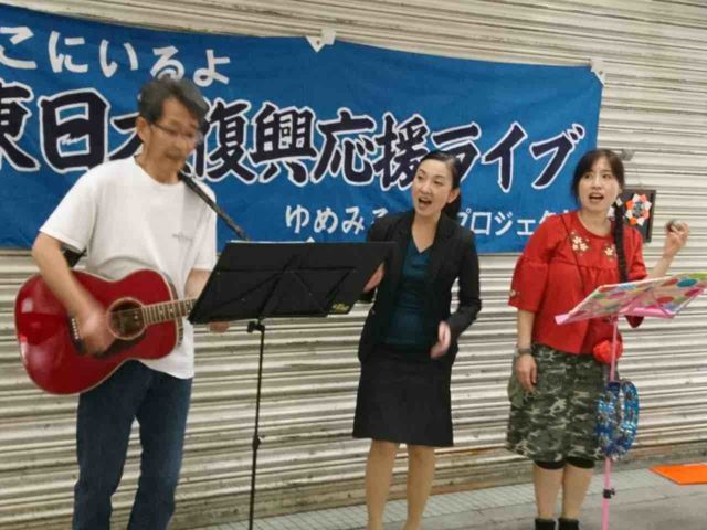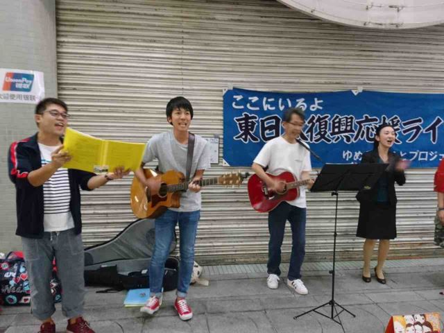 ■第163回 東日本復興応援ライブ 9月22日(金) 20:00〜22:00 松山市大街道 スペース田中前にて 募金や被災地へのメッセージを集めています。 このたび、皆様から頂いた募金60万円を、気仙沼へ届けて参りました。 少年サッカーチーム鹿折FCさまへ30万円相当の夜間照明器具。 子どもたちの遊び場を提供する団体「あそびーばー」さまへ30万円。 皆さまのご協力ありがとうございます。 引き続き応援をよろしくお願いいたします。 ☆お知らせ☆ 私たちチームのオリジナルソング「ここにいるよ」のCD販売しています。 1枚500円。そのうち311円は東日本復